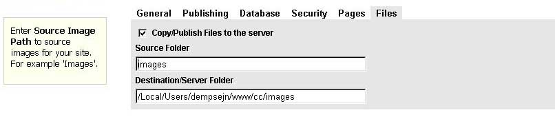 For now leave the Security and Pages tabs alone. For the files tab, enter your information like the picture below: